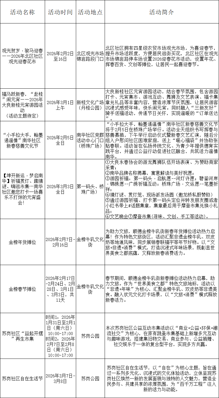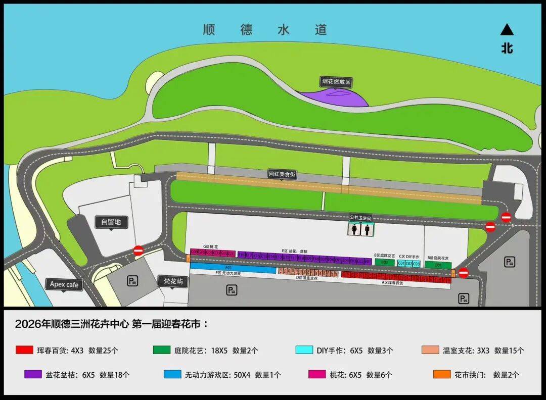 2026容桂迎春花市打造218个摊位,包括年花年桔、温室植物、创意潮玩、特色美食、年货精品、车尾箱集市等。